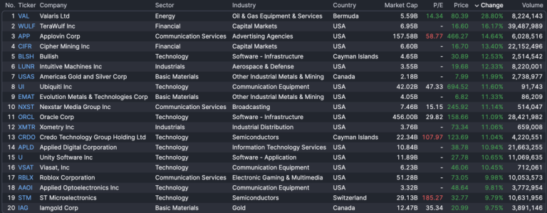 Applovin Corp (+14.6%) rounds out the top three, rising after a recent short-seller report which connected the firm with “transnational crime syndicates”, was retracted.