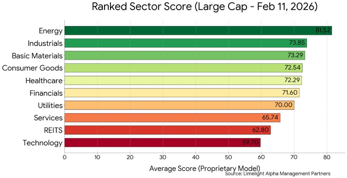The latest data show that energy is the best-scoring basket under the multifactor model, which blends fundamental and technical factors, including earnings, valuation, and momentum.