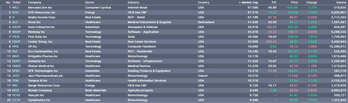 Atop the market, Keysight Technologies (+21.56%), ImmunityBio (+18.94%), and Leonardo DRS (+15.64%).